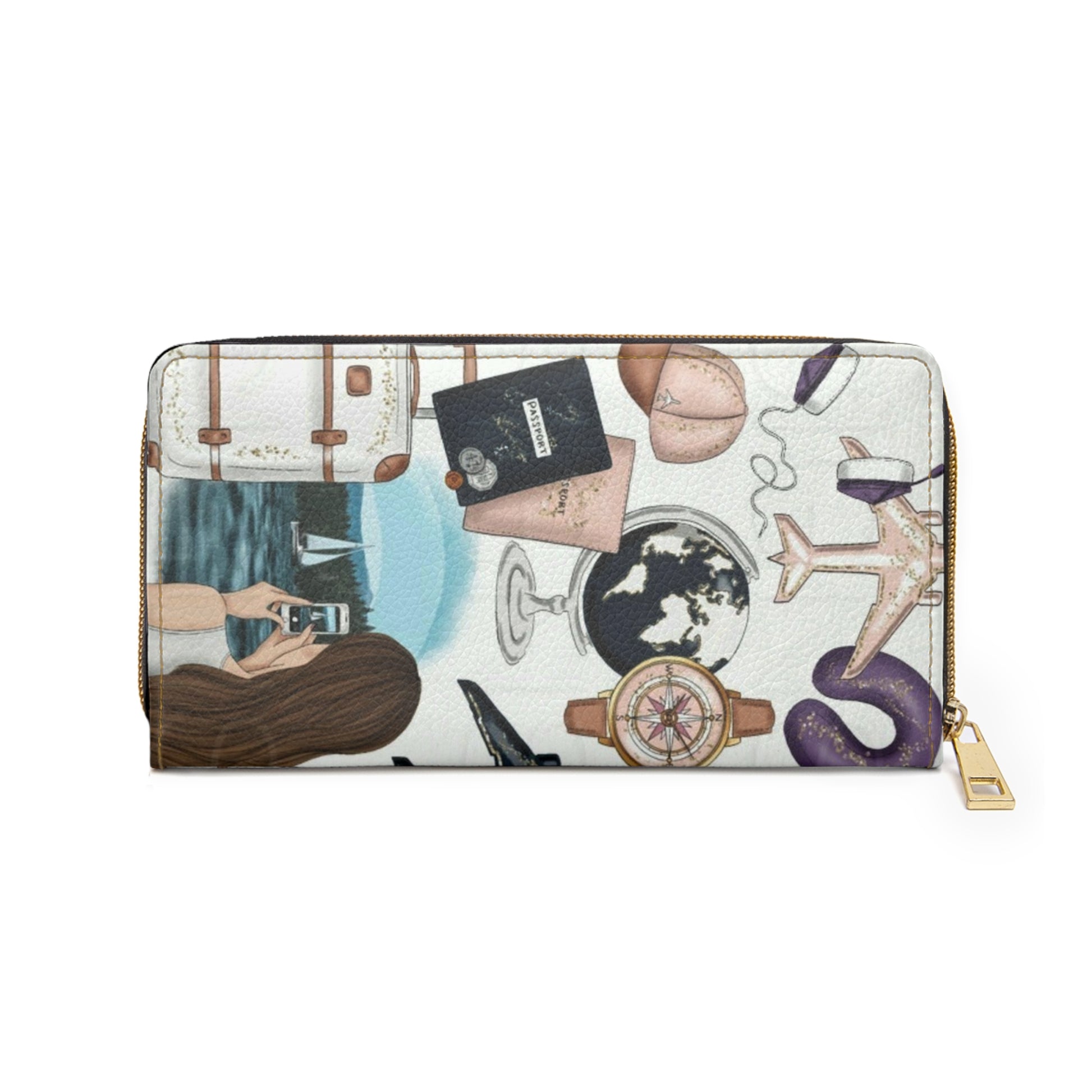 Travel-Themed Zipper Wallet, Stylish Passport Holder, Travel Accessories for Women, Adventure Gear, Perfect Gift for Travelers